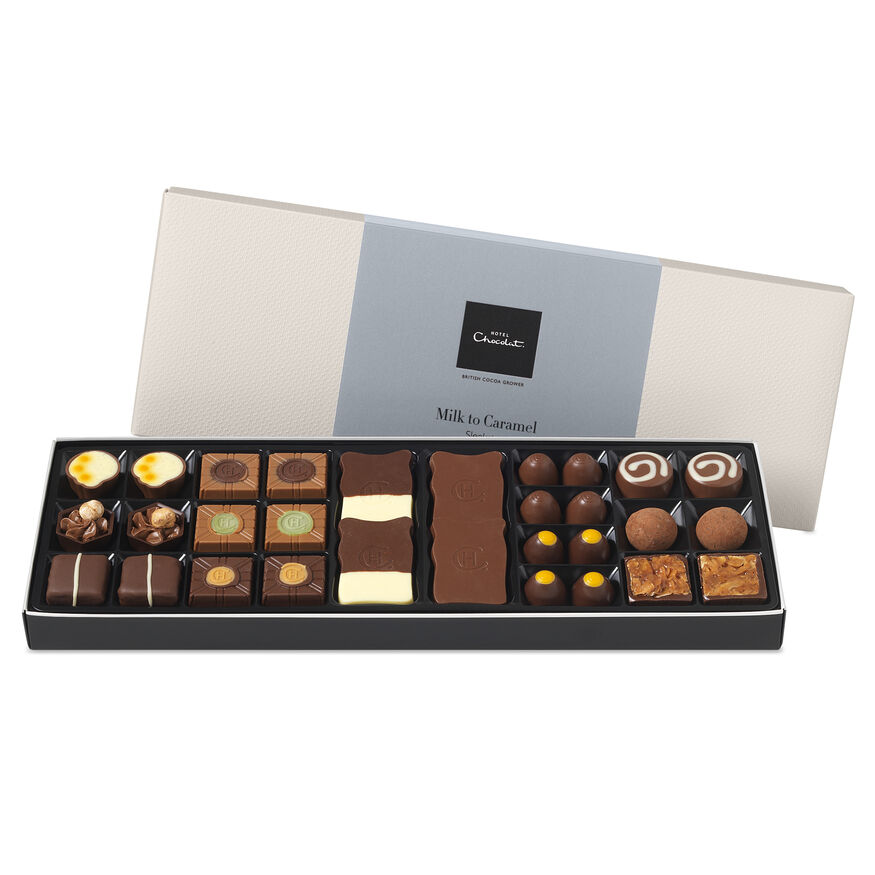 Mellow and comforting, take your pick from 34 of our finest milk and caramel-milk chocolates