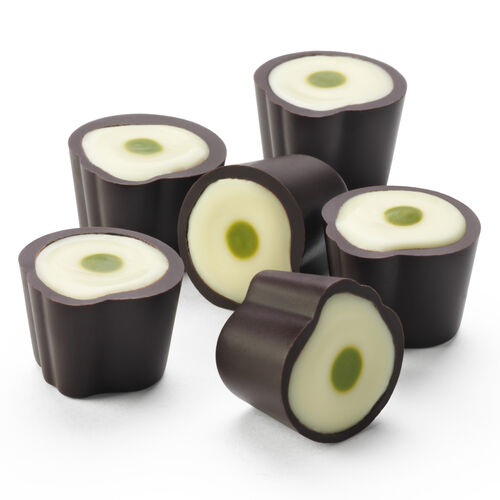 The best type of caramel is made with lashings of butter: our butter-mint caramel is sumptuously smooth, with delicate and refreshing notes of mint running through to lift the rich flavours. We’ve layered our butter-mint caramel with a white crème to add in fragrant notes of vanilla, akin to that of a luxury créme caramel.