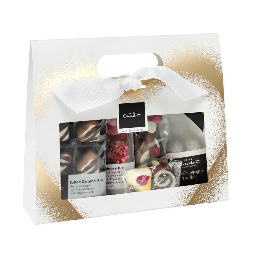 Spoil your Valentine with a traditional box of Classics — smooth pralines, gooey caramels, solid chocolates, and tipsy truffles all with our trademark nuanced cocoa tones. Our Champagne Truffles are also suitably celebratory with a delightful boozy edge, presented in a charming tin. You could browse our Sleeksters, H-Boxes and heart shaped boxes, each one a treasure trove of signature recipes. Whichever Hotel Chocolat Valentine’s gift you select, add the final flourish with one of our gift cards complete with your own message - the perfect personalised touch.
