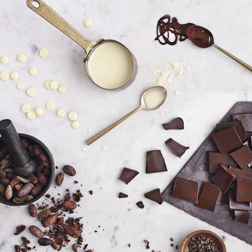 You’ll find higher percentages in dark chocolate recipes, with less in milk, and least in white. Surprisingly, one of the UK’s most famous dark chocolates contains just 39% cocoa, and its milk counterpart only 23%. That means the largest ingredient overall is sugar. We believe this is wrong. We always prefer to use more cocoa in our chocolate for an authentic and satisfying cocoa hit. We put 40 – 70% cocoa in our milk and Supermilk chocolate, and 70-100% in our dark.