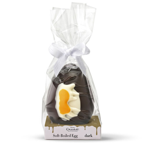 Splat! Our chocolate sculptress broke the mould. Original dark chocolate Easter egg with a naturally-coloured decorative yolk. Vegan*.