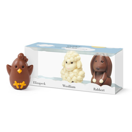 Elizapeck, Woolliam, and Rabbert are ready for an adventure! These cute characters, each cast from premium, high-cacao chocolate, are the perfect addition to any Easter Egg hunt. With their adorable design, mellow flavours and petite size, they’re ideal treats for little ones.
