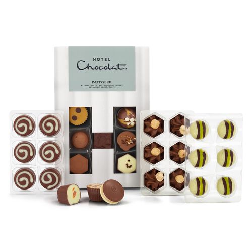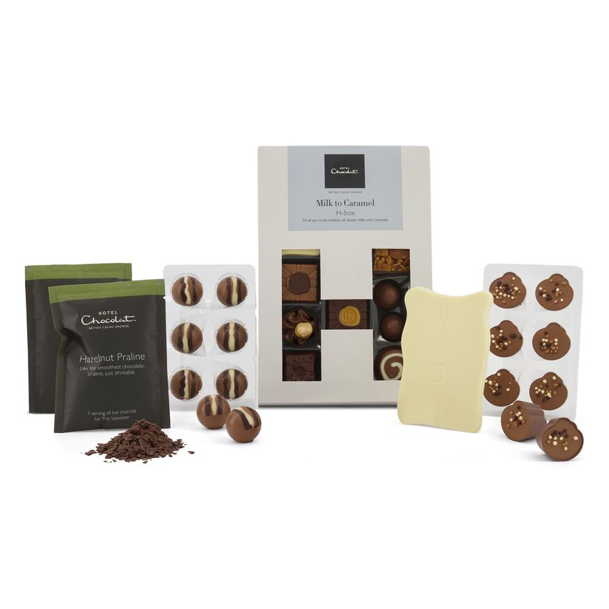 Ingredients: cocoa solids (cocoa butter, cocoa mass), sugar, full cream MILK powder, roasted HAZELNUTS, vegetable fats (coconut, shea, sunflower), skimmed MILK powder, butter oil (from MILK), salted caramel vodka liqueur, sweetened hazelnut paste (HAZELNUTS, sugar, emulsifier (sunflower lecithin)), stabilisers (sorbitol, glycerol), glucose syrup, caramel half-salted butter (glucose fructose syrup, sweetened condensed MILK, half salted butter (from MILK), sugar, salt), peanut butter paste (PEANUTS, sea salt), freeze dried fruit powders (raspberry, strawberry), cream (from MILK), arabica coffee paste (coffee paste, refined sunflower oil, flavouring, fruit extracts (apple, carob), emulsifier (glycerin)), PECAN NUT paste, caramelised sugar, HAZELNUT paste, emulsifiers (SOYA lecithin, sunflower lecithin), whipping cream (cream (from MILK), stabiliser (carrageenan)), cocoa biscuits (WHEAT flour, sugar, cocoa powder, butter (from MILK), reduced fat cocoa powder, sunflower oil, salt, raising agent (ammonium bicarbonate), flavouring), lactose (from MILK), shortbread biscuits (WHEAT flour, coconut oil, sugar, cocoa butter, WHEAT starch, raising agents (sodium bicarbonate, ammonium bicarbonate), salt), whole MILK, concentrated whey (from MILK), flavourings, neutral alcohol, meringue granules (sugar, cocoa butter, WHEAT starch, EGG white), raspberry juice concentrate, yoghurt powder (yoghurt powder (from MILK), sugar, acidity regulators (malic acid, citric acid), flavouring), freeze dried fruit pieces (strawberry, raspberry), acidity regulator (citric acid), MILK protein, colours (paprika extract, annatto bixin), vanilla seeds.