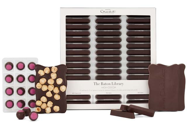 Dark chocolate contains minimum 70% cocoa solids. Milk chocolate contains minimum 40% cocoa solids, minimum 20% milk solids. White chocolate contains minimum 36% cocoa butter, minimum 27% milk solids. Caramel milk chocolate contains minimum 36% cocoa solids, minimum 26% milk solids.