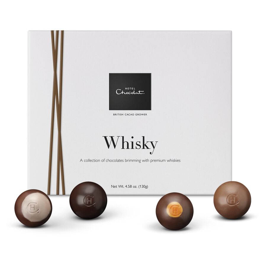 Excellent bourbon, single malt whiskies and whisky cream liqueur served in 12 chocolates. A Gift for the aficionados.